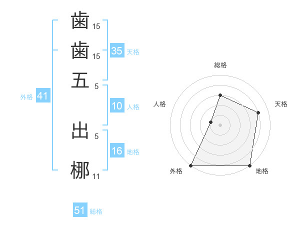 歯歯五 出梛さんの総格は51画の3点!