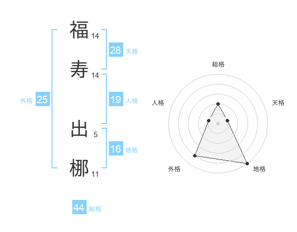 福寿 出梛さんの総格は44画の2点!