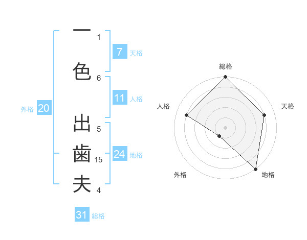 一色 出歯夫さんを姓名の画数から五運を鑑定