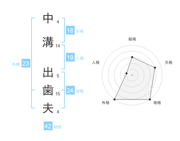 中溝 出歯夫さんの外格は23画の5点