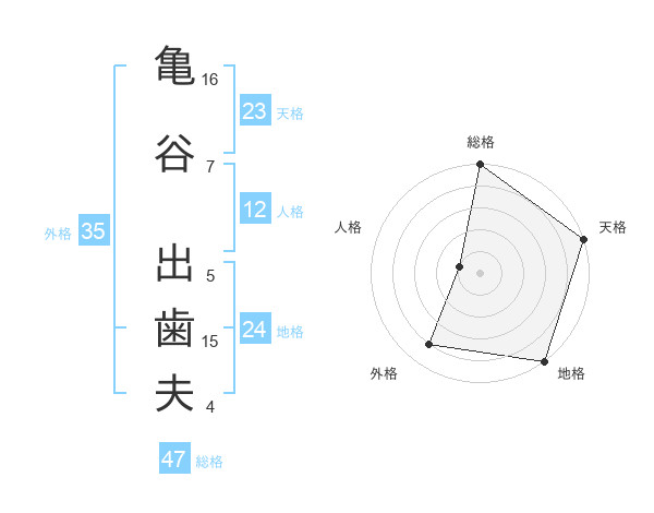 亀谷 出歯夫さんの総格は47画の5点