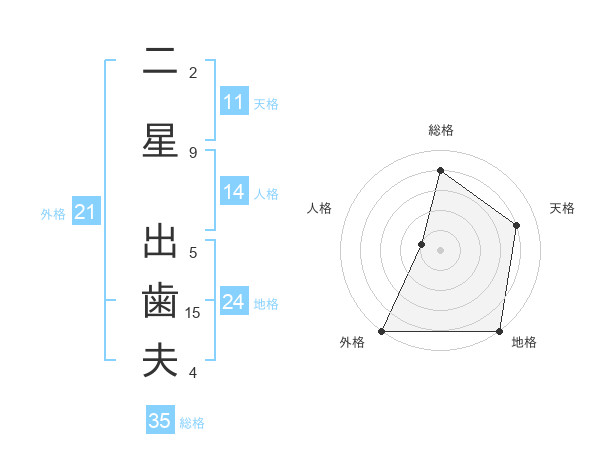 二星 出歯夫さんの外格は21画の5点