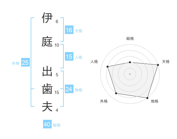 伊庭 出歯夫さんを姓名の画数から五運を鑑定