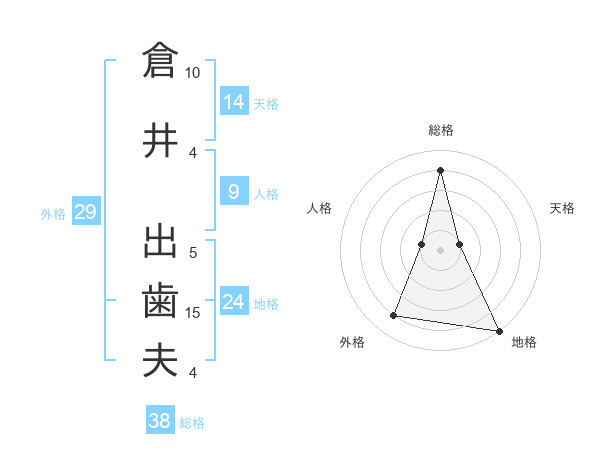 倉井 出歯夫さんの総格は38画の4点!