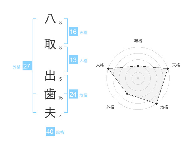 八取 出歯夫さんの天格は16画の5点!