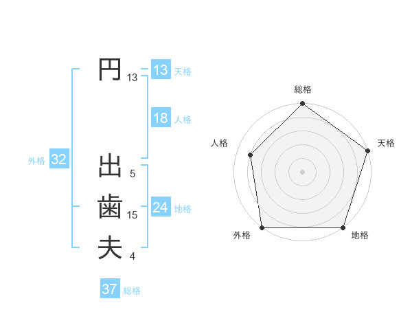 円 出歯夫さんを姓名の画数から五運を鑑定