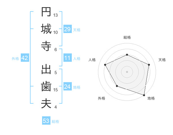 円城寺 出歯夫さんの総格は53画の3点!