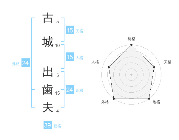 古城 出歯夫さんの総格は39画の5点