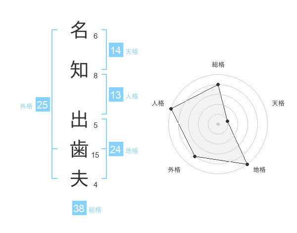 名知 出歯夫さんを姓名の画数から五運を鑑定