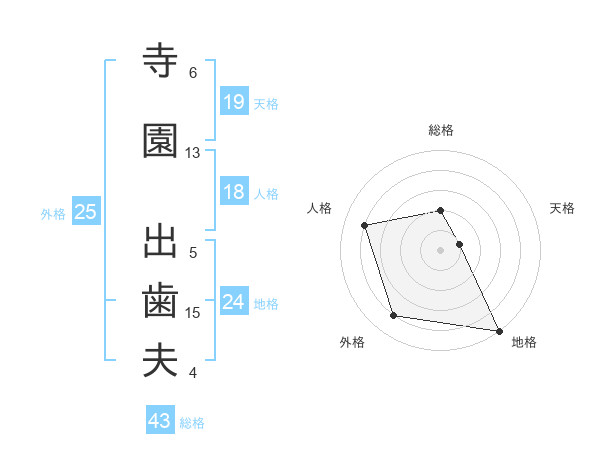 寺園 出歯夫さんの地格は24画の5点!