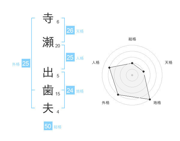寺瀬 出歯夫さんの総格は50画の2点!