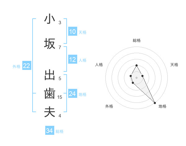 小坂 出歯夫さんの総格は34画の2点!