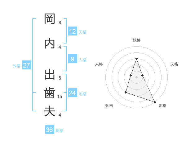 岡内 出歯夫さんの天格は12画の1点!