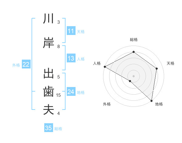 川岸 出歯夫さんの総格は35画の4点!