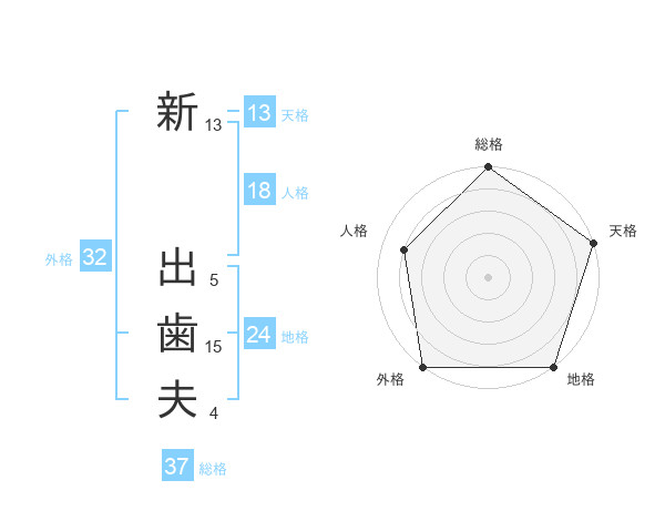 新 出歯夫さんの総格は37画の5点!