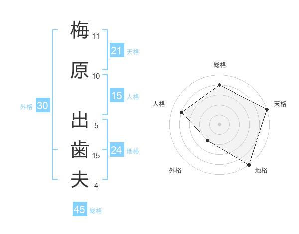 梅原 出歯夫さんを姓名の画数から五運を鑑定