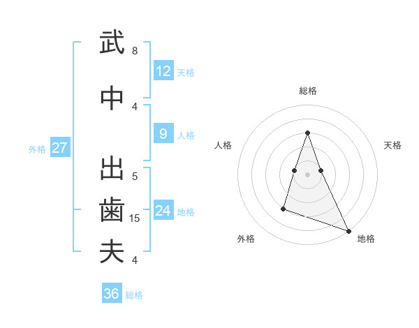 武中 出歯夫さんを姓名の画数から五運を鑑定