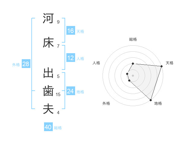 河床 出歯夫さんを姓名の画数から五運を鑑定