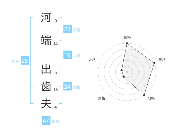 河端 出歯夫さんの天格は23画の5点!