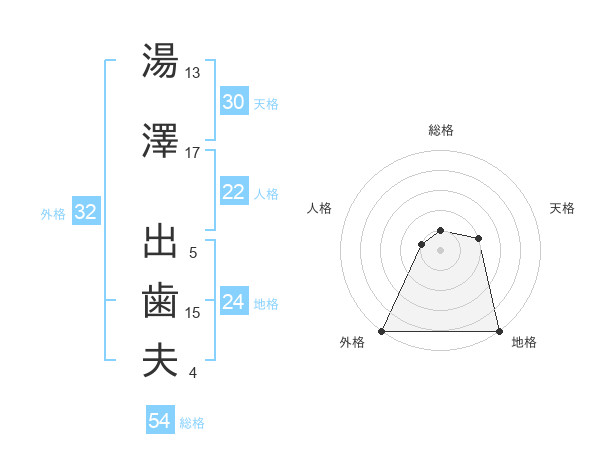 湯澤 出歯夫さんを姓名の画数から五運を鑑定