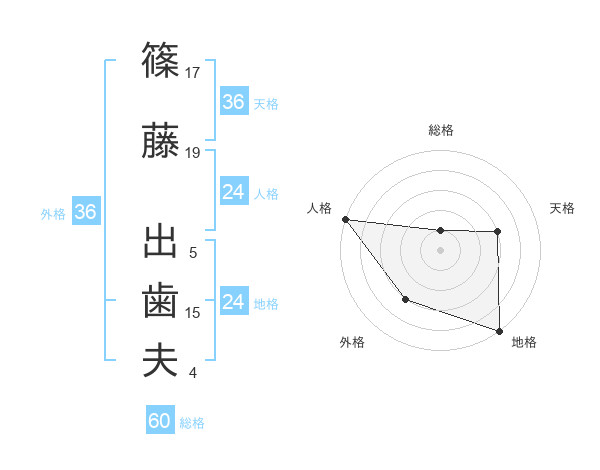 篠藤 出歯夫さんを姓名の画数から五運を鑑定