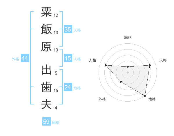 粟飯原 出歯夫さんの地格は24画の5点!