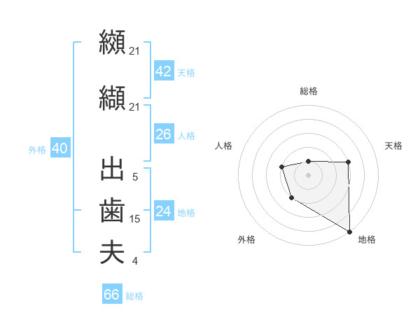 纐纈 出歯夫さんの総格は66画の1点