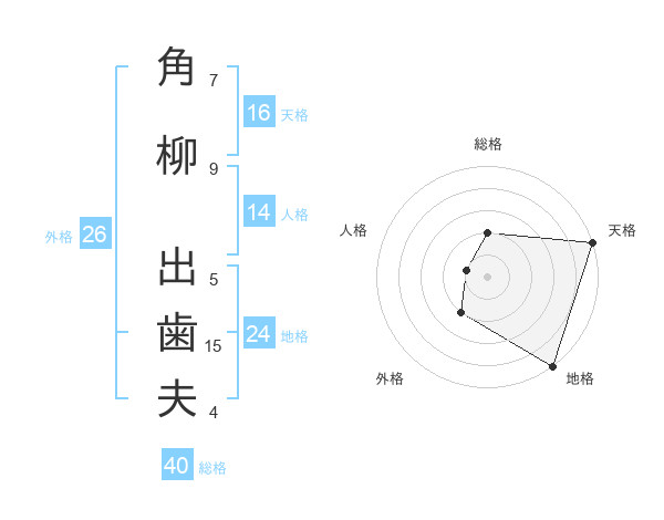 角柳 出歯夫さんの天格は16画の5点!