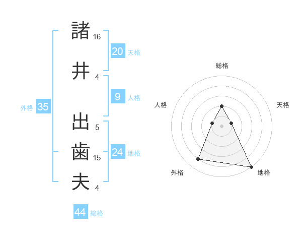 諸井 出歯夫さんを姓名の画数から五運を鑑定