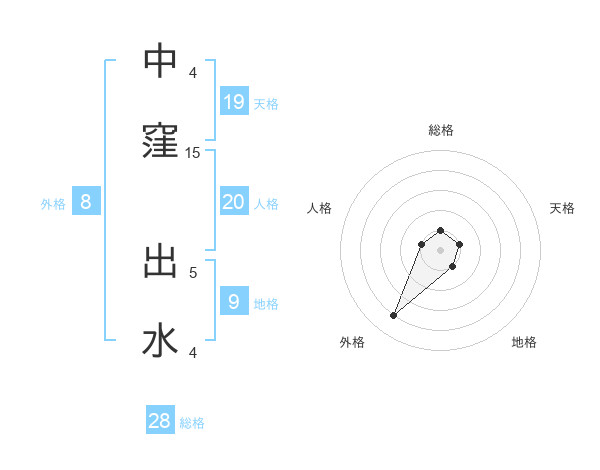 中窪 出水さんの外格は8画の4点!