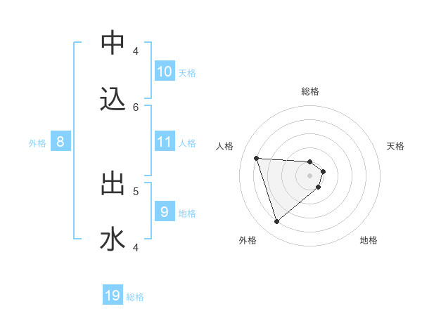 中込 出水さんの総格は19画の1点!