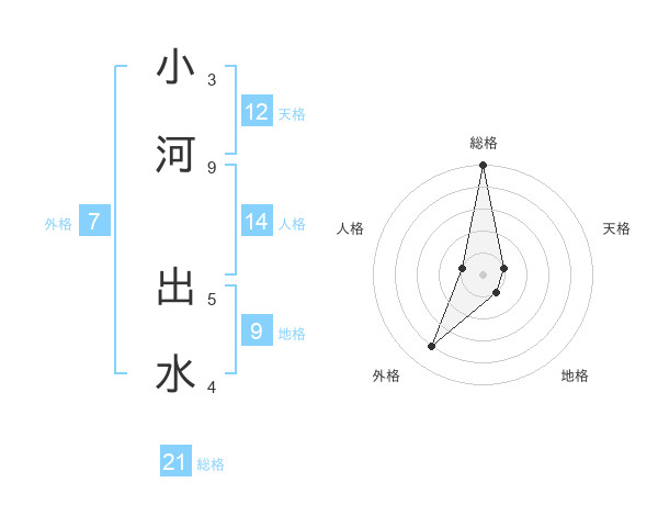 小河 出水さんの総格は21画の5点!