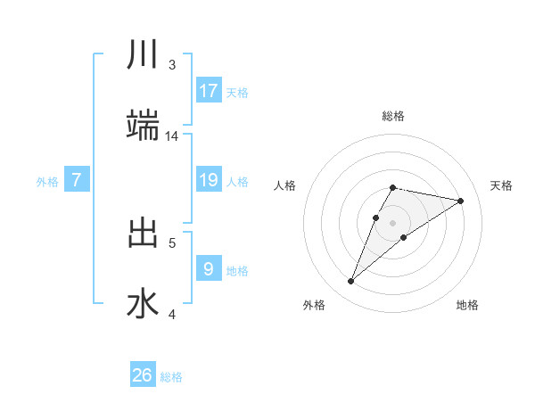 川端 出水さんの総格は26画の2点!