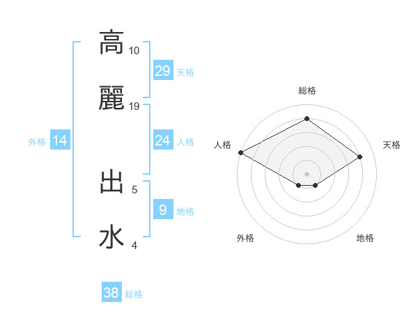 高麗 出水さんの総格は38画の4点!