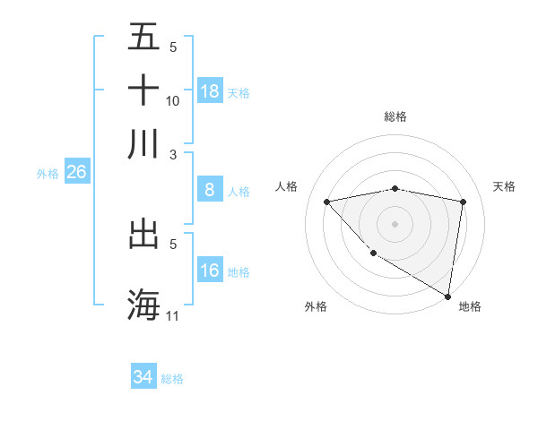 五十川 出海さんの総格は34画の2点!