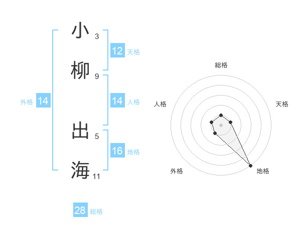 小柳 出海さんの総格は28画の1点!