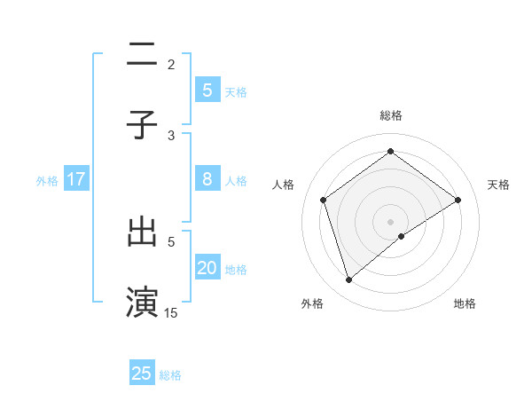二子 出演さんの天格は5画の4点!