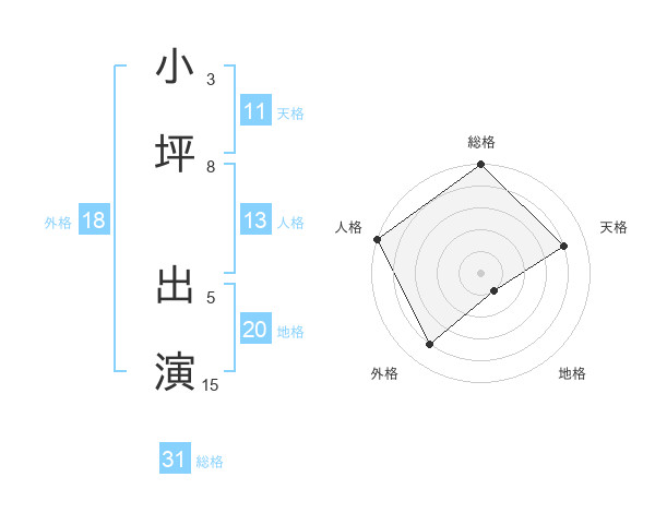 小坪 出演さんの総格は31画の5点!