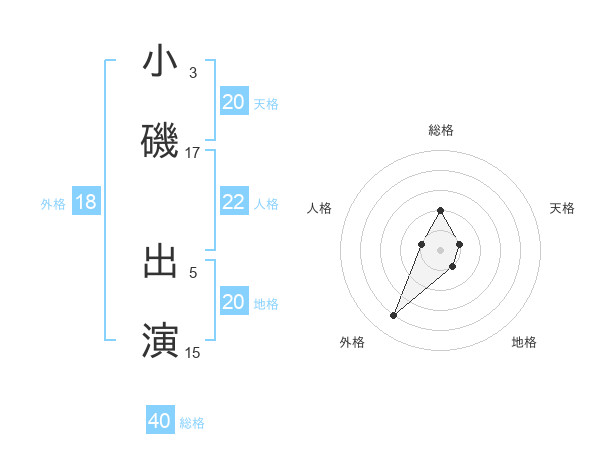 小磯 出演さんの地格は20画の1点!