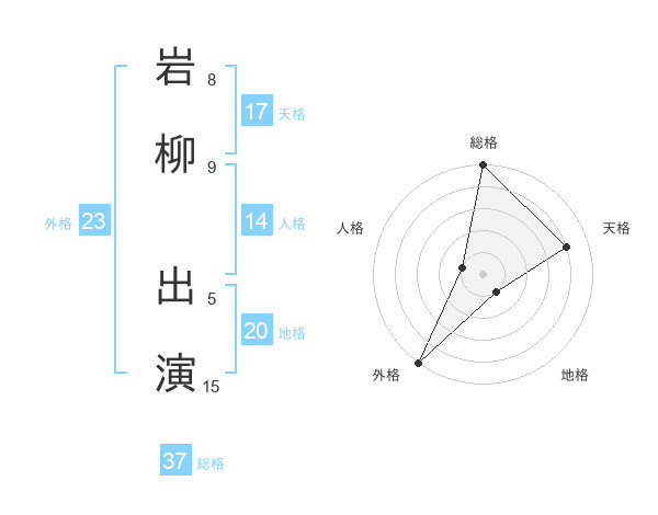岩柳 出演さんを姓名の画数から五運を鑑定