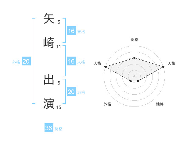 矢崎 出演さんの天格は16画の5点!