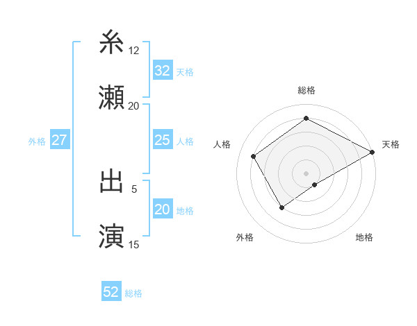 糸瀬 出演さんを姓名の画数から五運を鑑定