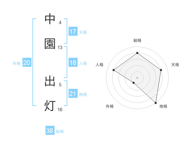 中園 出灯さんの総格は38画の4点!