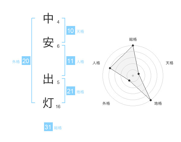 中安 出灯さんの総格は31画の5点!