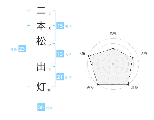 二本松 出灯さんを姓名の画数から五運を鑑定