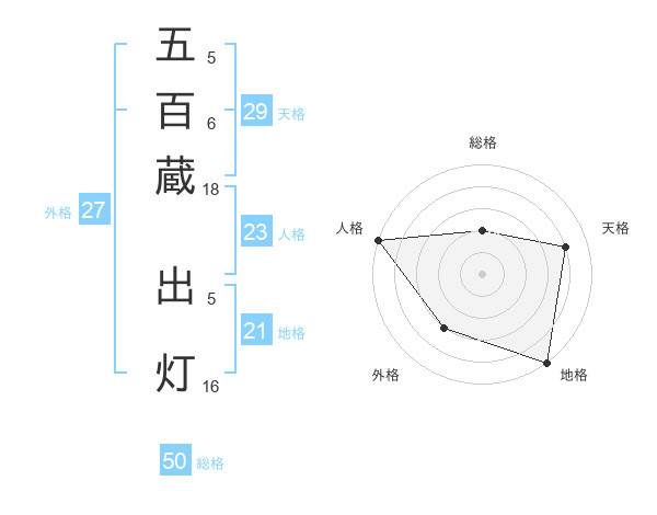 五百蔵 出灯さんの総格は50画の2点!