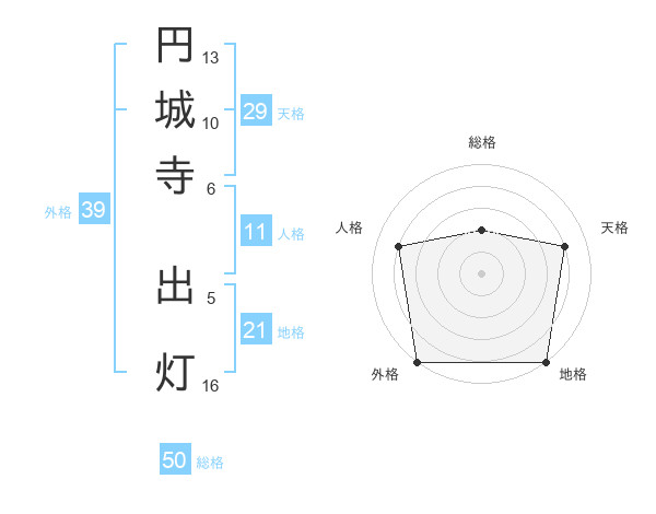 円城寺 出灯さんの総格は50画の2点!