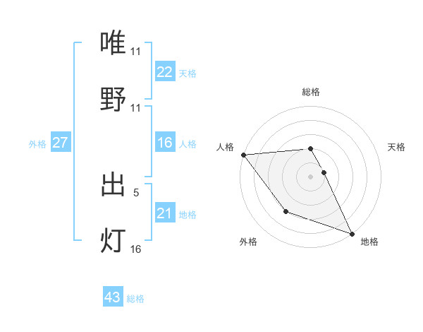 唯野 出灯さんの天格は22画の1点!