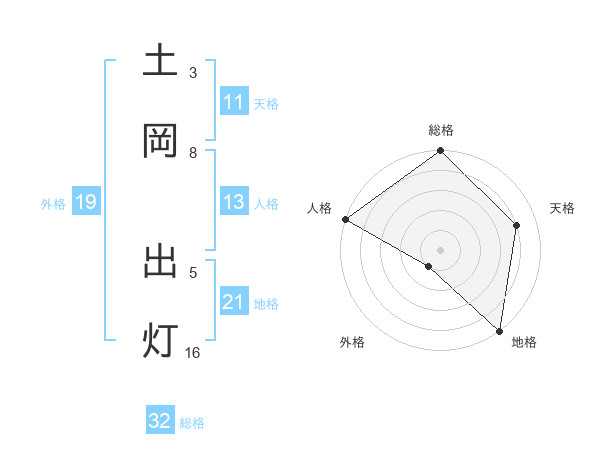 土岡 出灯さんの総格は32画の5点!