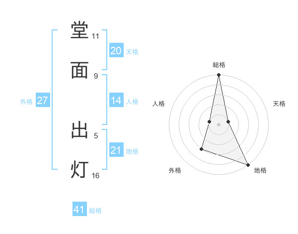 堂面 出灯さんを姓名の画数から五運を鑑定